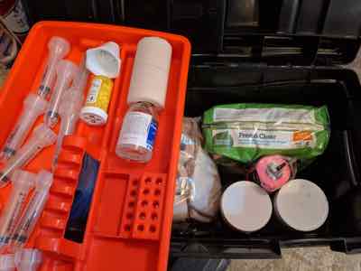 - 60 cc syringes are handy dosing meds and flushing out wounds in weird places.